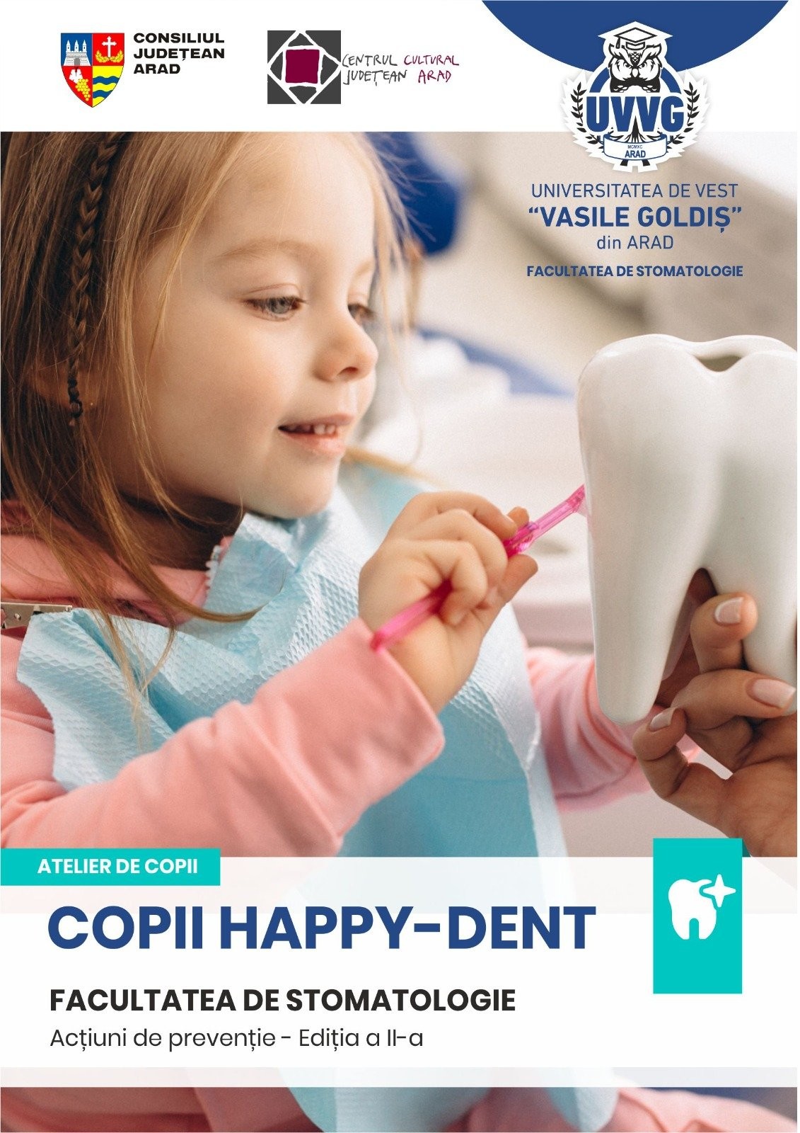 Concomitent, în această perioadă, la Facultatea de Stomatologie se desfășoară proiectul „Atelier “Copii Happy-Dent”- Acțiuni de prevenție, Editia 2, ca parte a programelor de prevenție oro-dentară, proiect realizat cu sprijinul Consiliului Județean Arad, prin Centrul Cultural Județean Arad.