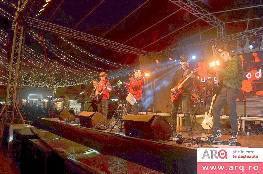 Dar momentul așteptat al serii a fost concertul de la ora 19.00, când scena s-a luminat din nou, ca un altar al bucuriei. Fantasia, Young Blood, Next Page și Acoustrip au adus pe scena din Piața Catedralei o energie caldă, luminoasă, de parcă ar fi cântat doar cu gândul la oamenii de sub ghirlandele roșii și aurii. Vocile lor au plutit peste piață ca un abur sonor, topindu-se în luminile de Crăciun și în respirația mulțimii.