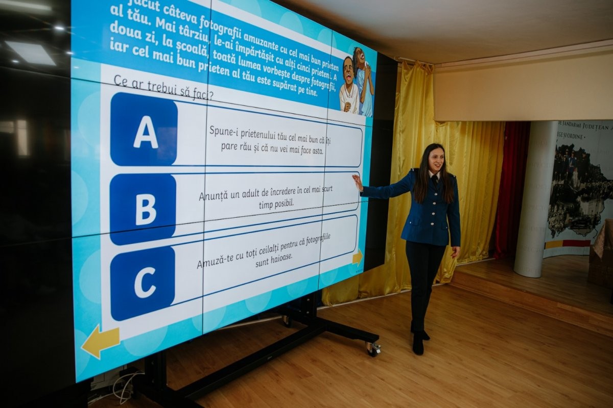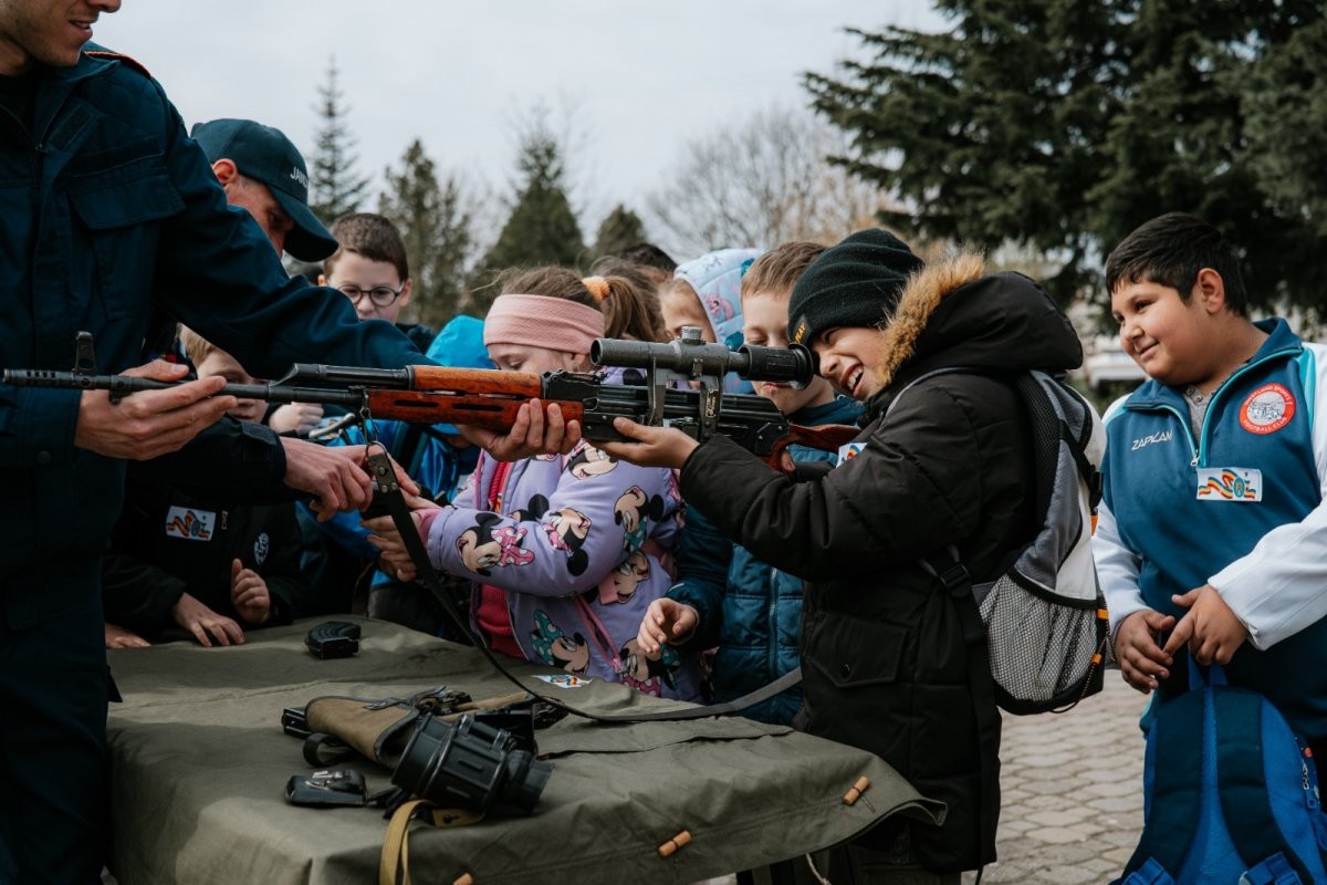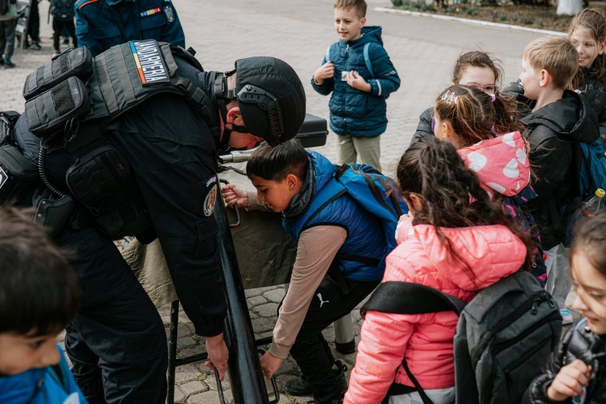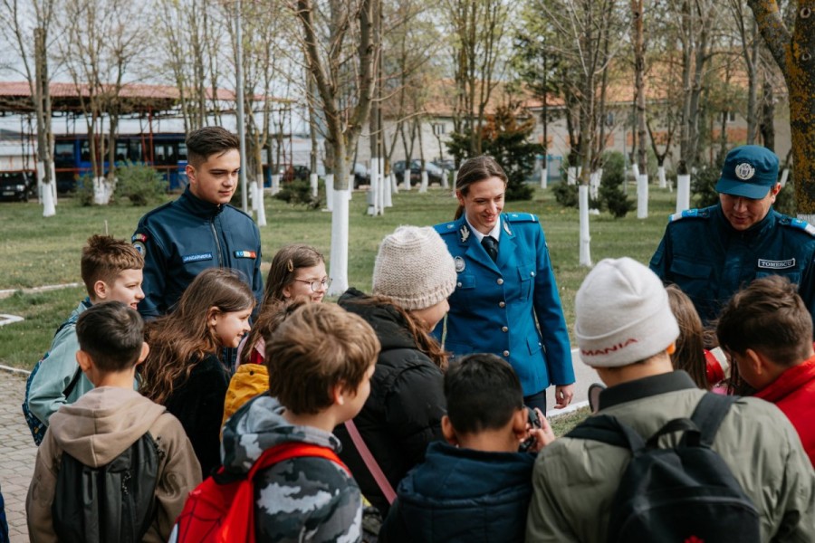 Activitățile au continuat cu vizitarea unității, unde elevii au avut ocazia să descopere aspecte din istoria Inspectoratului de Jandarmi Județean Arad, să interacționeze cu jandarmii și să exploreze atelierele și echipamentele din dotare. Fiecare mijloc tehnic prezentat a stârnit interesul copiilor, generând numeroase întrebări la care jandarmii au răspuns cu deschidere.