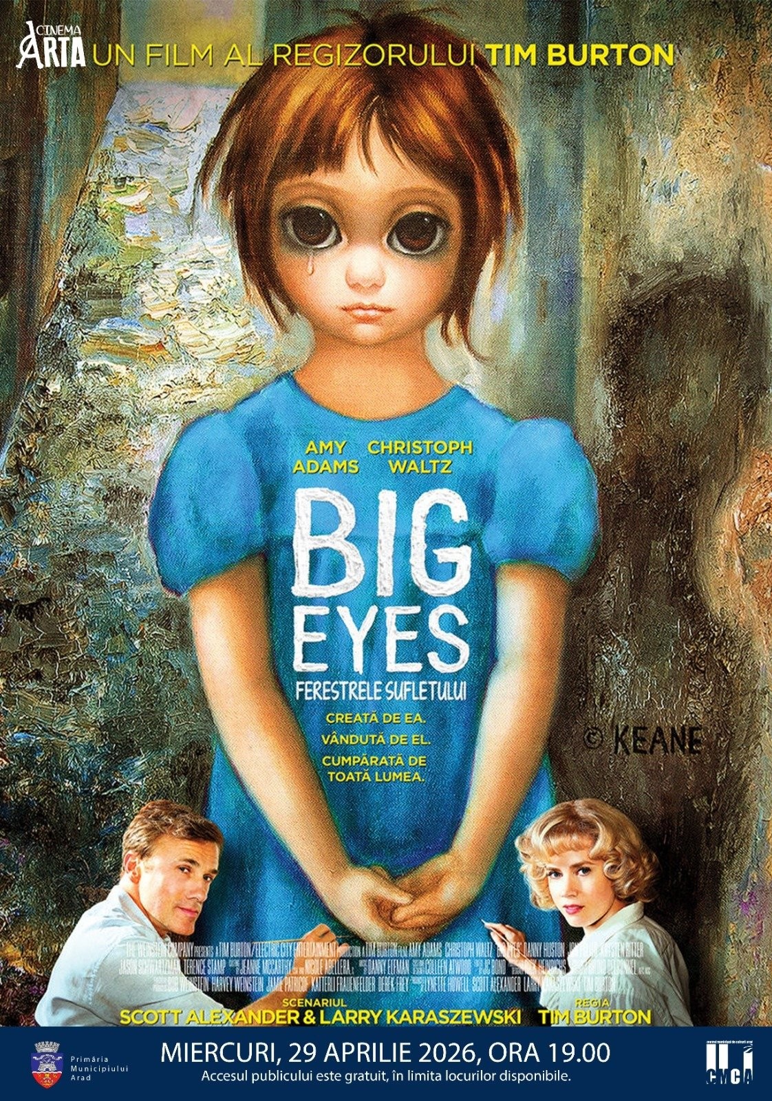 Filmul „Ferestrele sufletului“/„Big Eyes” (r. Tim Burton), care are la bază povestea reală a lui Walter Kean, un pictor faimos din anii ’50 – ’60, va fi proiectat la Cinematograful „Arta“ din Arad.